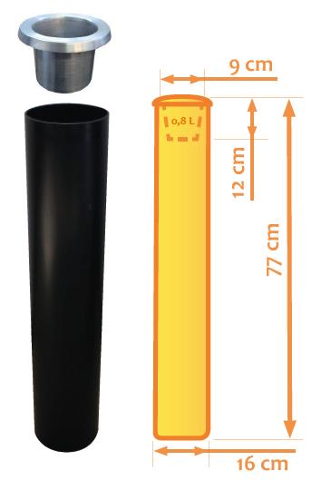 Cenicero de pie fabricado en polietileno con recipiente metálico extraible. Destinado a ser utilizado como elemento decorativo en entradas a hoteles, restaurantes, cafeterías y todo tipo de terrazas.
