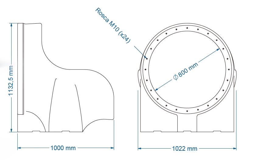 Outlet mouth for PE tube slides.