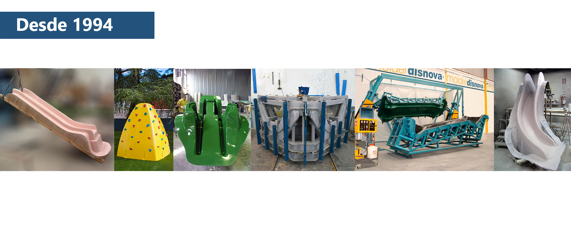 Entre nuestra producción propia, destacamos nuestros productos para el sector de los parques infantiles y acuáticos, como nuestros toboganes a medida instalados por todo el mundo. También contamos con jardineras de fibra de vidrio de alta calidad.
