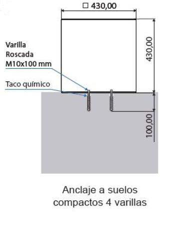 Adaptado para uso exterior con fijación al suelo por anclajes.